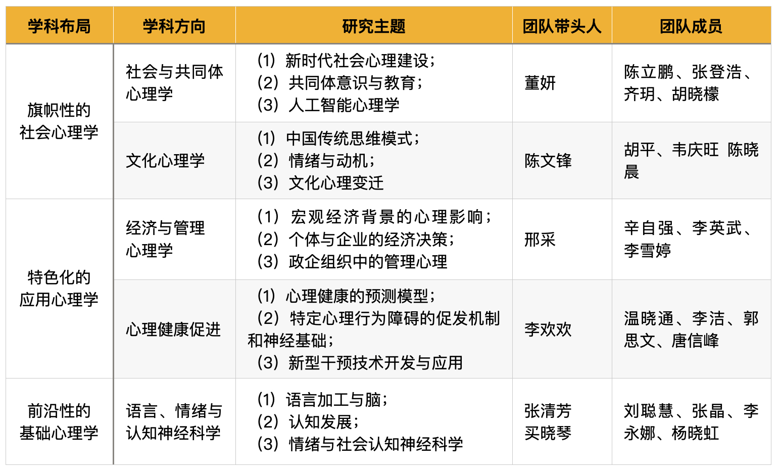 心理学系学科方向与学术团队